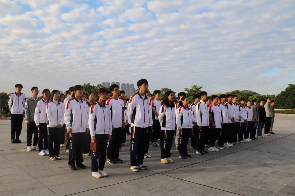 为深入学习贯彻党的二十届四中全会精神,大力弘扬爱党爱国主义精神,激励广大学子奋勇逐梦、将青春奋斗融入党和人民的事业,11月24日清晨,我院在大学城校区正门广场举行“铭记历史当自强 奋勇逐梦谱华章”主题升旗仪式暨爱国主义教育活动。学院党委副书记武慧娟、学校学生处思教科王治力老师、2025级本科生班主任洪念老师、学院专职辅导员、2025级全体本科新生及青马班学员参加。活动由本科生辅导员欧少珍老师主持。