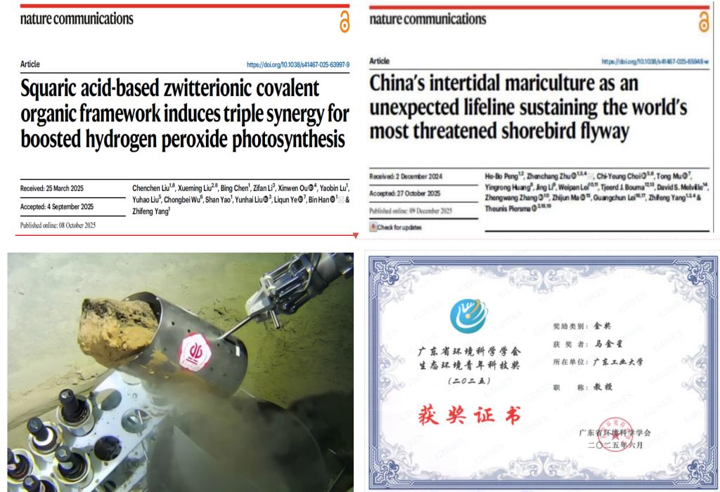 主持获批国家重点研发计划课题2项、子课题3项;国家自然科学基金项目获资助率21.67%,包括青年科学基金B类项目(国家优青)1项;新增承担企事业委托项目26项,合同经费约1227万元。在Nature Water、Nature Communications、NatureReviewsCleanTechnology、Nature Sustainability、PNAS等国际权威期刊发表论文376篇。滨海与深海生态环境研究中心团队在我国南海南沙、西太平洋以及南海海马冷泉海域顺利完成多项科考任务,实现了多项关键深海与深渊采样技术新突破。学院作为第二完成单位申报的2025年度国家科学技术奖二等奖成功通过初评;荣获广东省环境科学学会生态环境青年科技奖金奖。