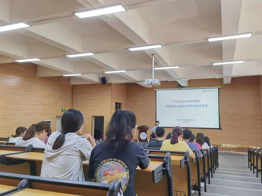 图2 海尔生物医疗安全培训总监李公海工程师为师生开展危化品安全培训